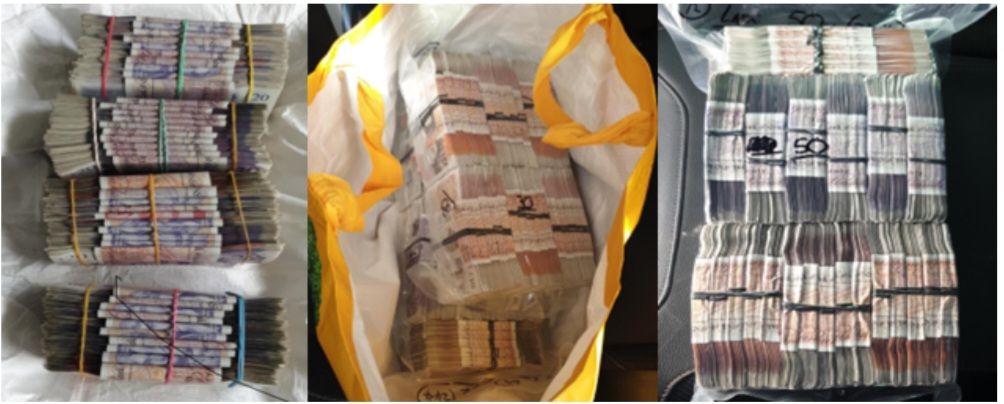 A further search of an address in Huyton led to suspected cocaine, cannabis and around £200,000 in cash being seized (pictured).