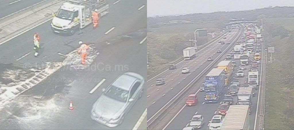 From the images you can see the congestion in the area and works being carried out to clean up the carriageways so that the motorway can be fully reopened.