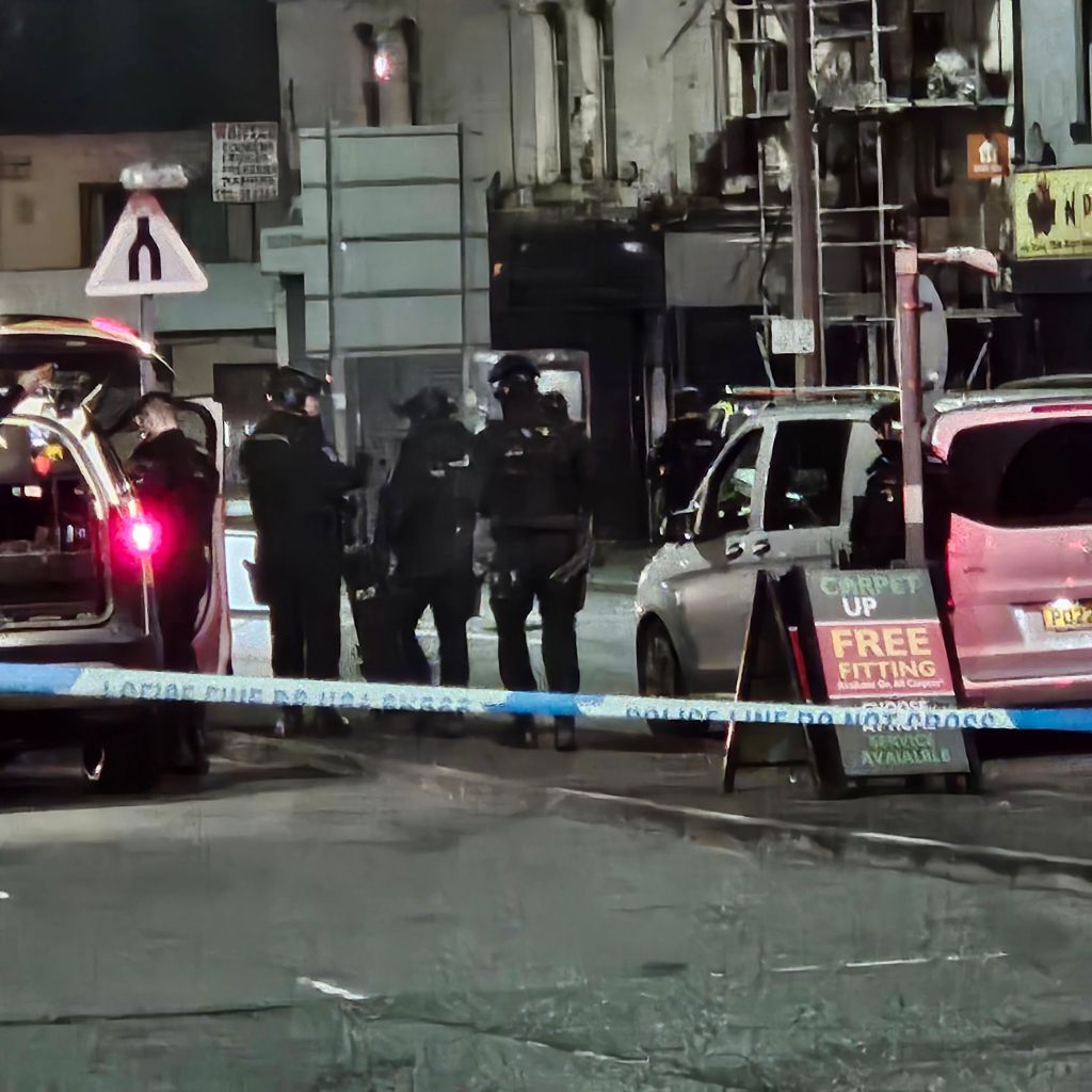 A member of the public at the scene cordon told us that a male was inside one of the flats that are above a row of shops and refusing to surrender to police, he lived at a nearby property and was told he could not gain access due to the area being closed.