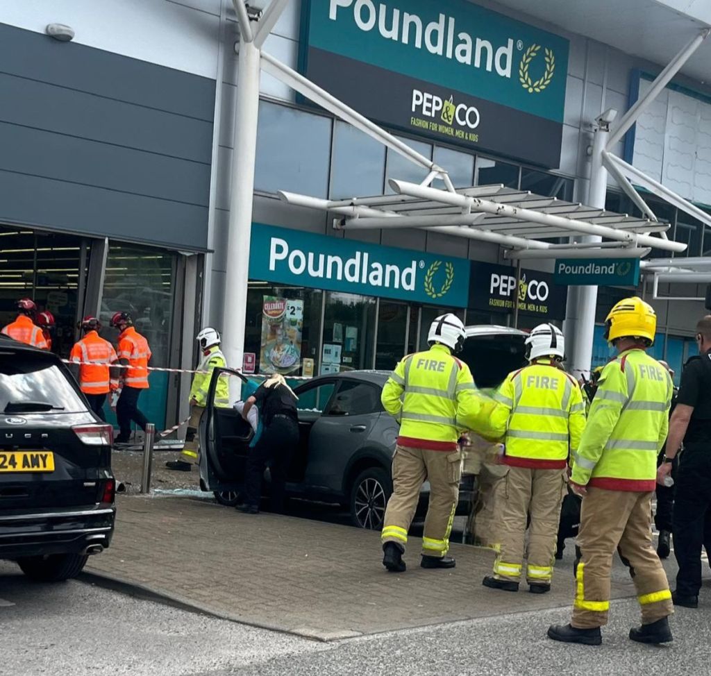 Emergency services rushed to the scene at Deepdale Retail Park this morning after a car collided with Poundland.