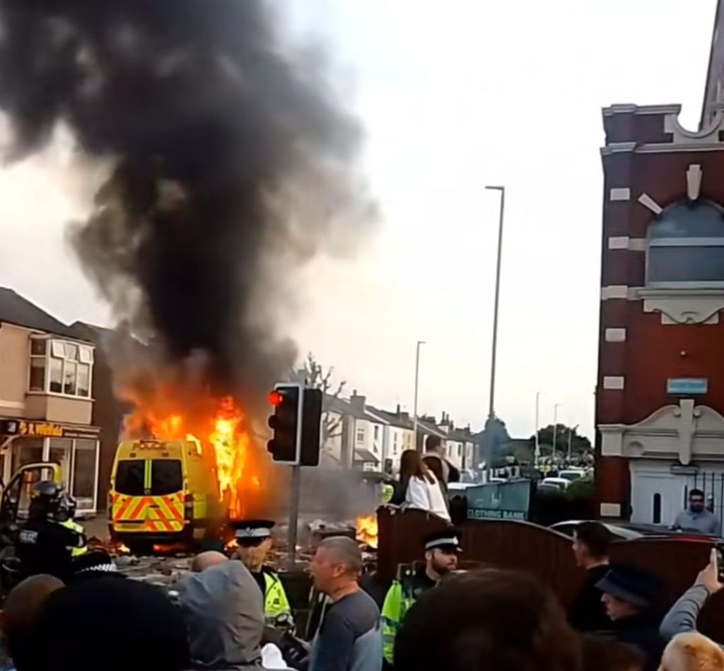The people involved have also set cars belonging to members of the public alight, thrown bricks at the local Mosque and damaged a local convenience store, and set wheelie bins were set on fire.