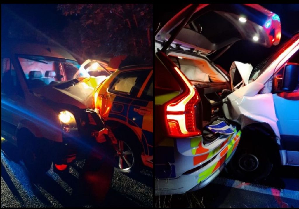 However, the officer at the front of the car noticed a Volkswagen Crafter van quickly being driven towards them.