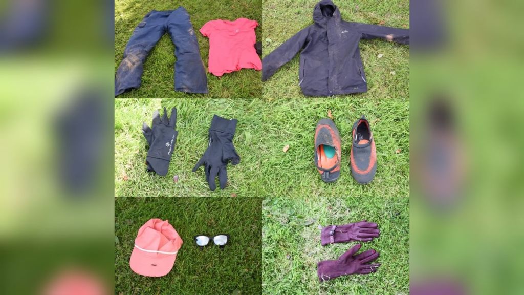 She was wearing a black ‘Peter Storm’ rain jacket, navy blue waterproof cargo pants, pink ‘Asics’ sports t-shirt, Orange and Black ‘Crane’ footwear, black ‘Ronhill’ gloves, and a rose gold-coloured ‘Lipsy’ watch. We have attached images of the clothing worn.