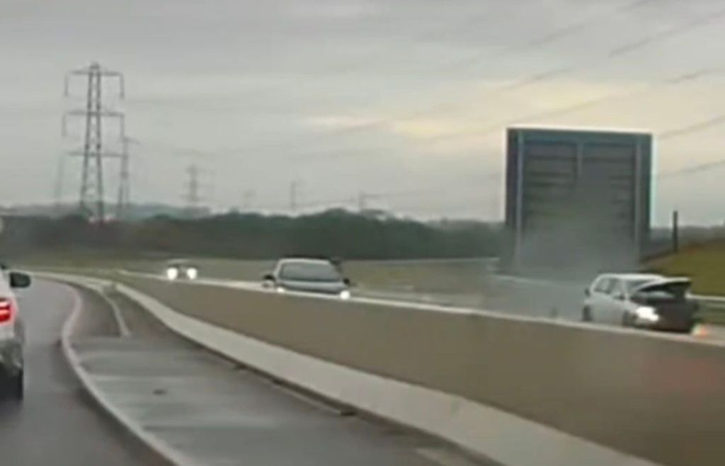 Footage from the scene shows a car that looks like a VW Golf lose control and collide with the barriers before spinning out into the middle of the carriageway.