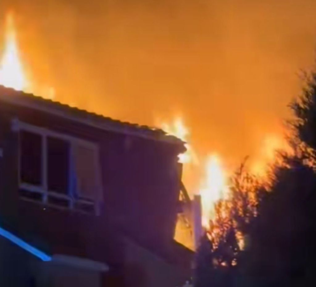 Videos and images circulating online show a property engulfed in flames with a large emergency service presence dealing with the incident.