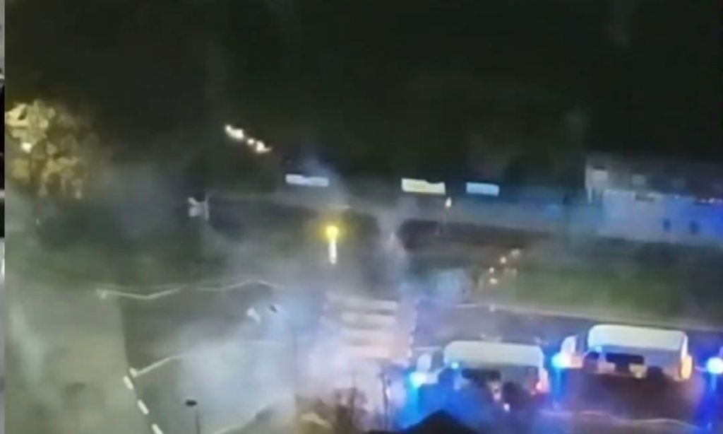 Members of the group threw fireworks, eggs and other items at officers and police vehicles. Fireworks were also aimed in the direction of other members of the public.