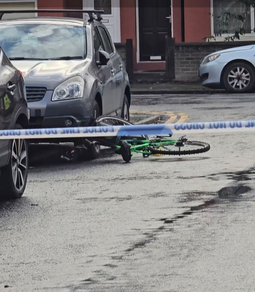 Officers could be seen in white suits taking photographs of a bicycle that was in situ next to a car within the cordon.