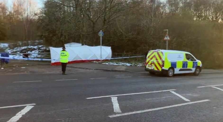 A forensic tent could be seen erected with a barrier cordon in place around the scene.
