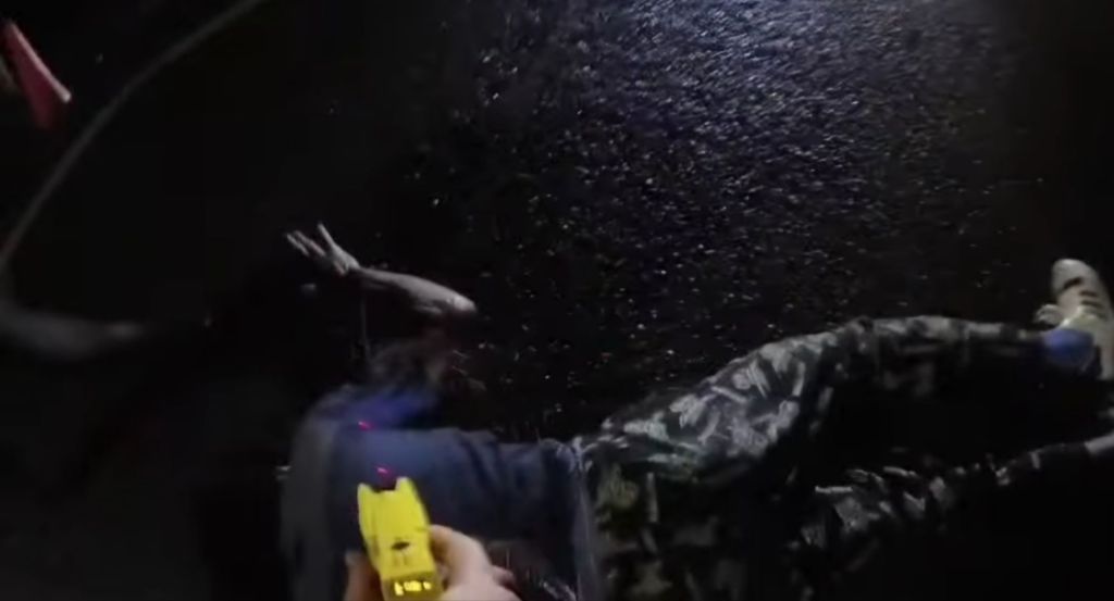 Officers were called to Burford Road at the junction of Withington Road in the Whalley Range area of Manchester on Thursday to reports of a disturbance. On arrival a man armed with a knife began damaging a police vehicle and had to be tasered to the ground and handcuffed.