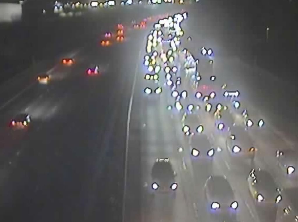 All three lanes were being held on Friday night between J31 and J32 northbound
