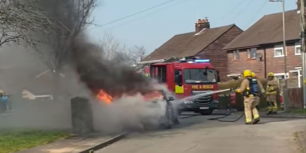 Upon arrival, firefighters found the car engulfed in flames. Crews worked quickly to extinguish the blaze, preventing it from spreading to nearby properties.