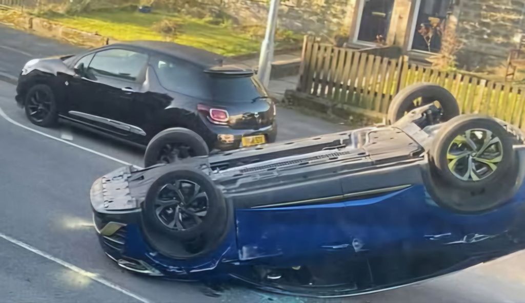 A shocking collision outside Abbey Village School this morning saw a car flip onto its roof, leaving onlookers fearing the worst.