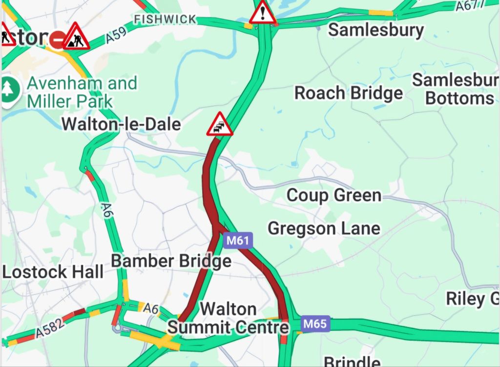 Commuters faced significant delays on the M6 northbound this morning due to a collision forced the closure of three lanes between Junction 30 (M61) and Junction 31 (A59 Preston New Road, Samlesbury).