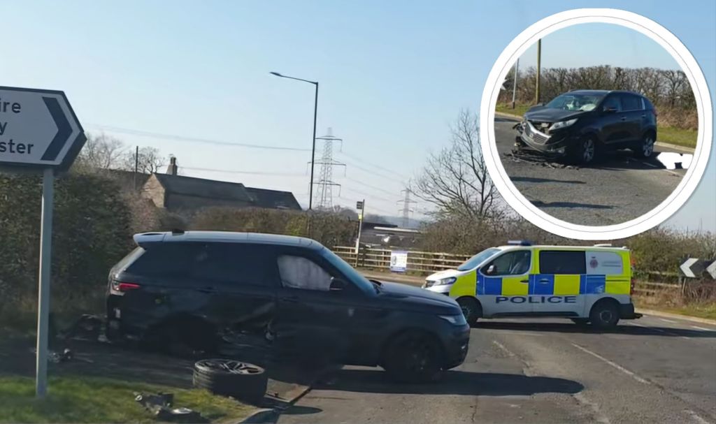 Photos posted in local community Facebook groups show police diverting traffic and two damaged vehicles.